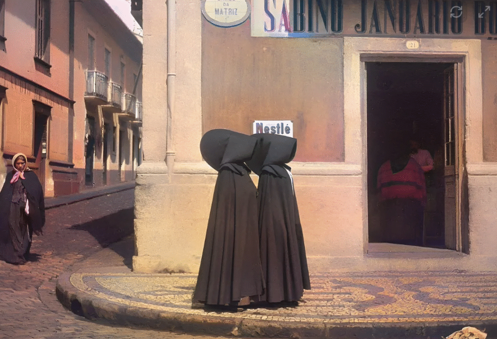 In Madeira modest clothing was also once common. Even today if you walk through certain rural villages in the north you can still find older women wearing dark head coverings especially on their way to church or during religious occasions. These women are not trying to make a statement. They simply kept what they inherited from their mothers and grandmothers. Their clothing represents humility reverence and tradition.