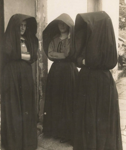 One of the most striking examples is the capote e capelo from Faial island. This garment is part of the traditional clothing of the Azores and is centuries old. The capote was a long dark blue cloak made of thick wool and the capelo was a structured hood that came forward over the face. It created a form of privacy and protection for women when they moved through public spaces. The silhouette is dramatic, almost mysterious, and it served a practical purpose in the harsh Atlantic weather (winds). It also created a barrier between a woman and the outside world allowing her to walk with dignity and discretion.